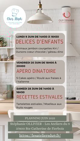 J’anime des ateliers culinaires à domicile (dans le 37, 86, 41, 45, 18 et autres départements sur demande)